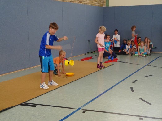 Den Abschluss der Sportwoche bildete unser alljährliches Sommerfest. Dieses wurde durch die Präsentation der einzelnen Sportgruppen in der Turnhalle eingeleitet.